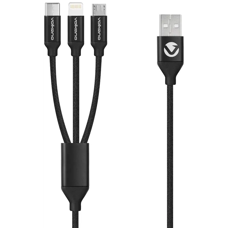 Volkano Weave Series Fabric Braided 3-in-1 (Type-C/Lightning/Micro) Cable 1m - Black